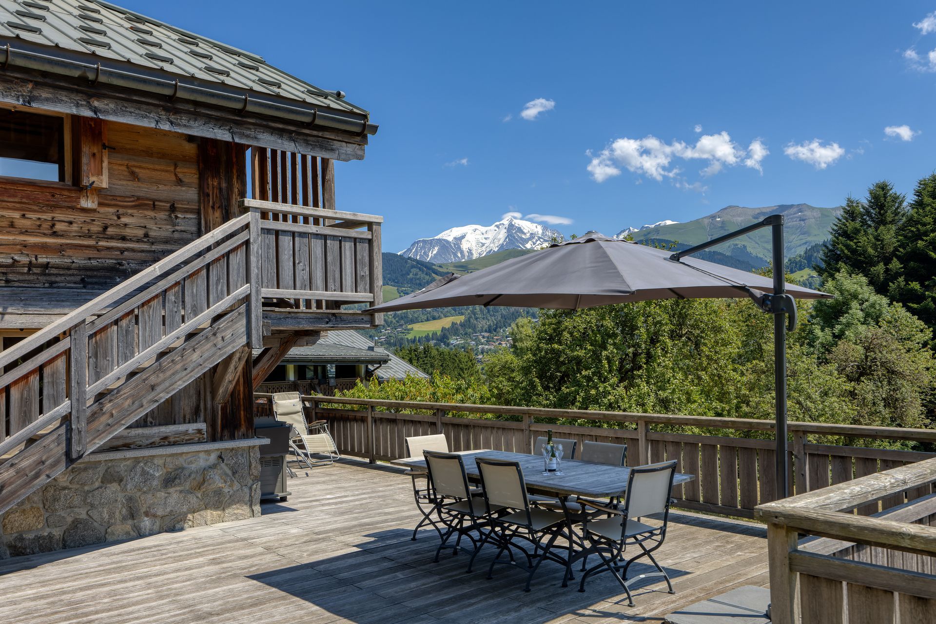 Magnifique chalet de 4 chambres offre une vue imprenable sur le Mont-Blanc et le Mont-Joly, avec des finitions haut de gamme et un soin apporté à chaque détail