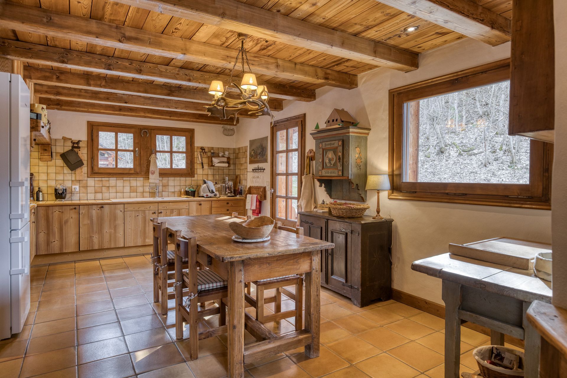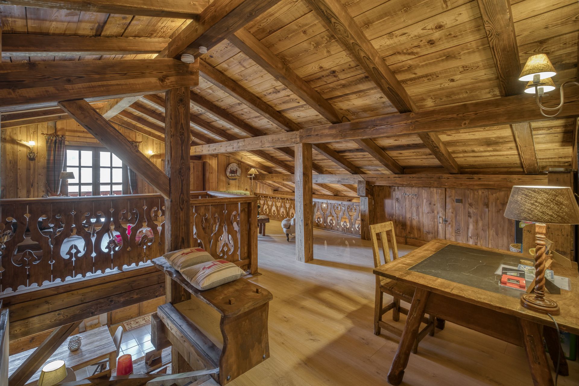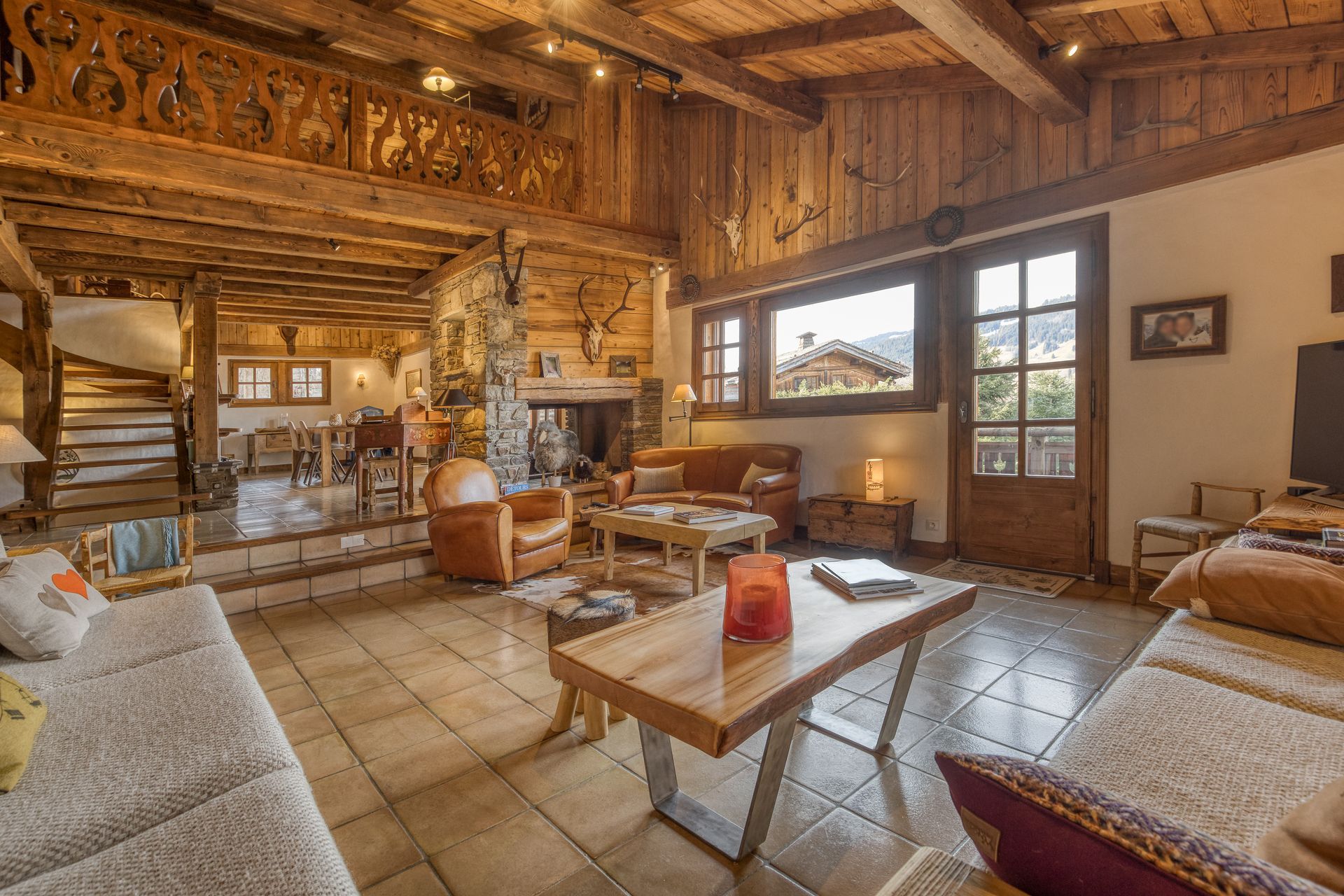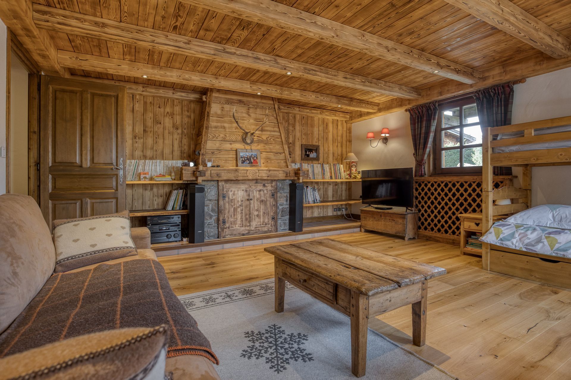 - Construction traditionnelle avec une belle charpente taillée par des artisans de Megève, le chalet offre une atmosphère montagne avec une grande convivialité grâce aux différents espaces de vie
