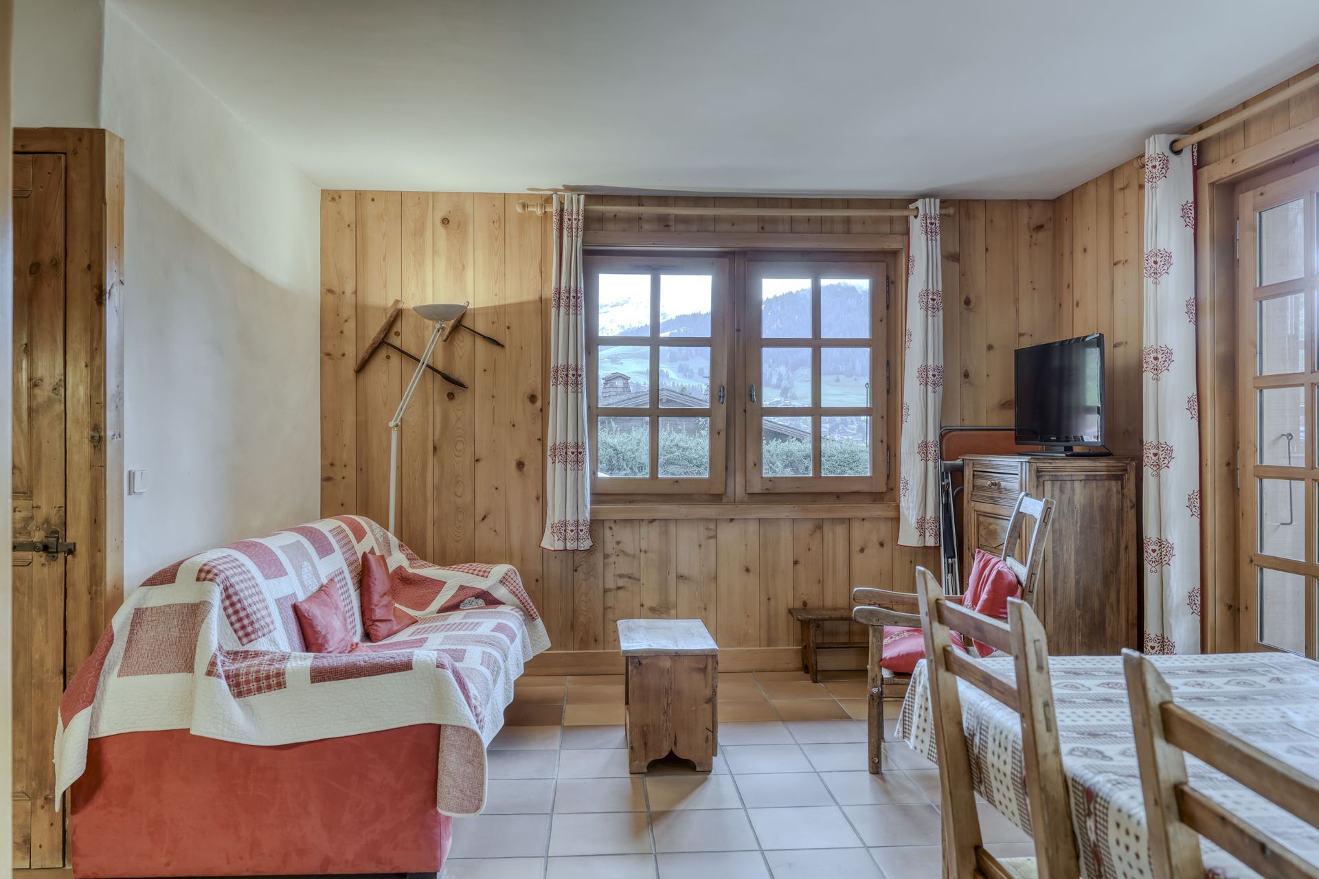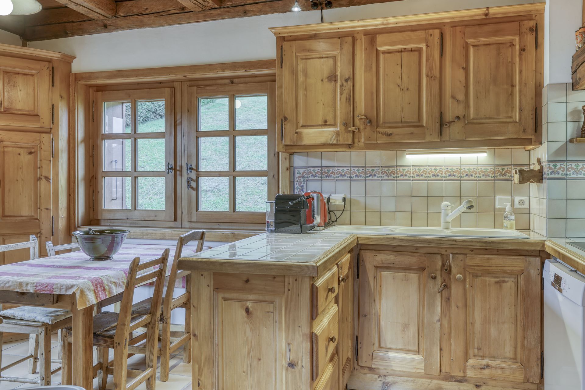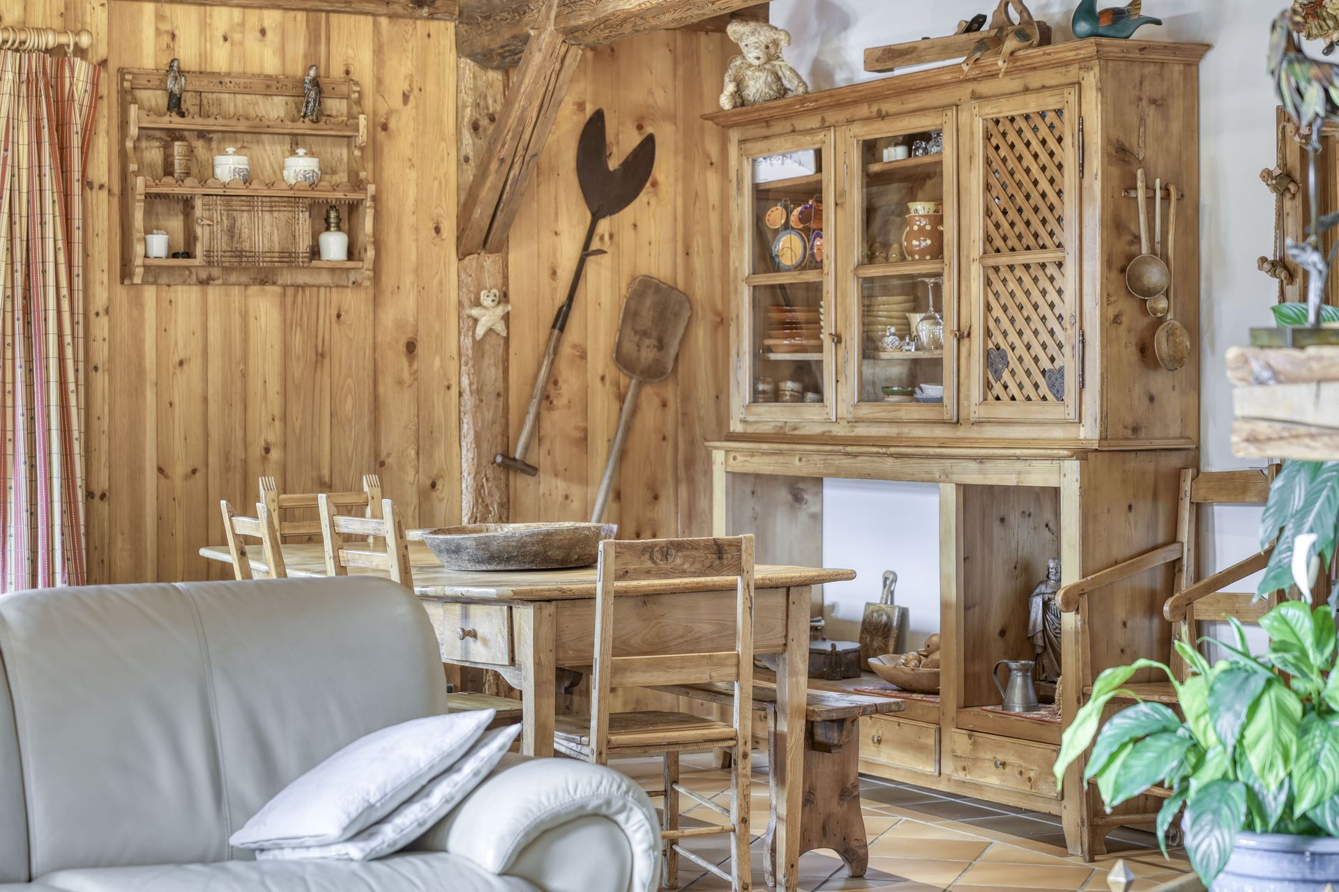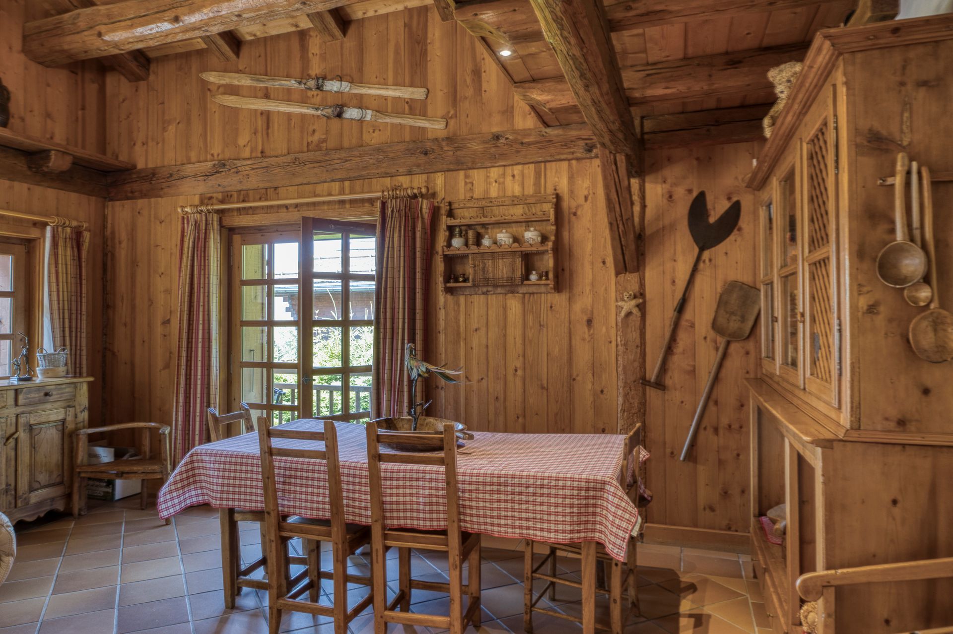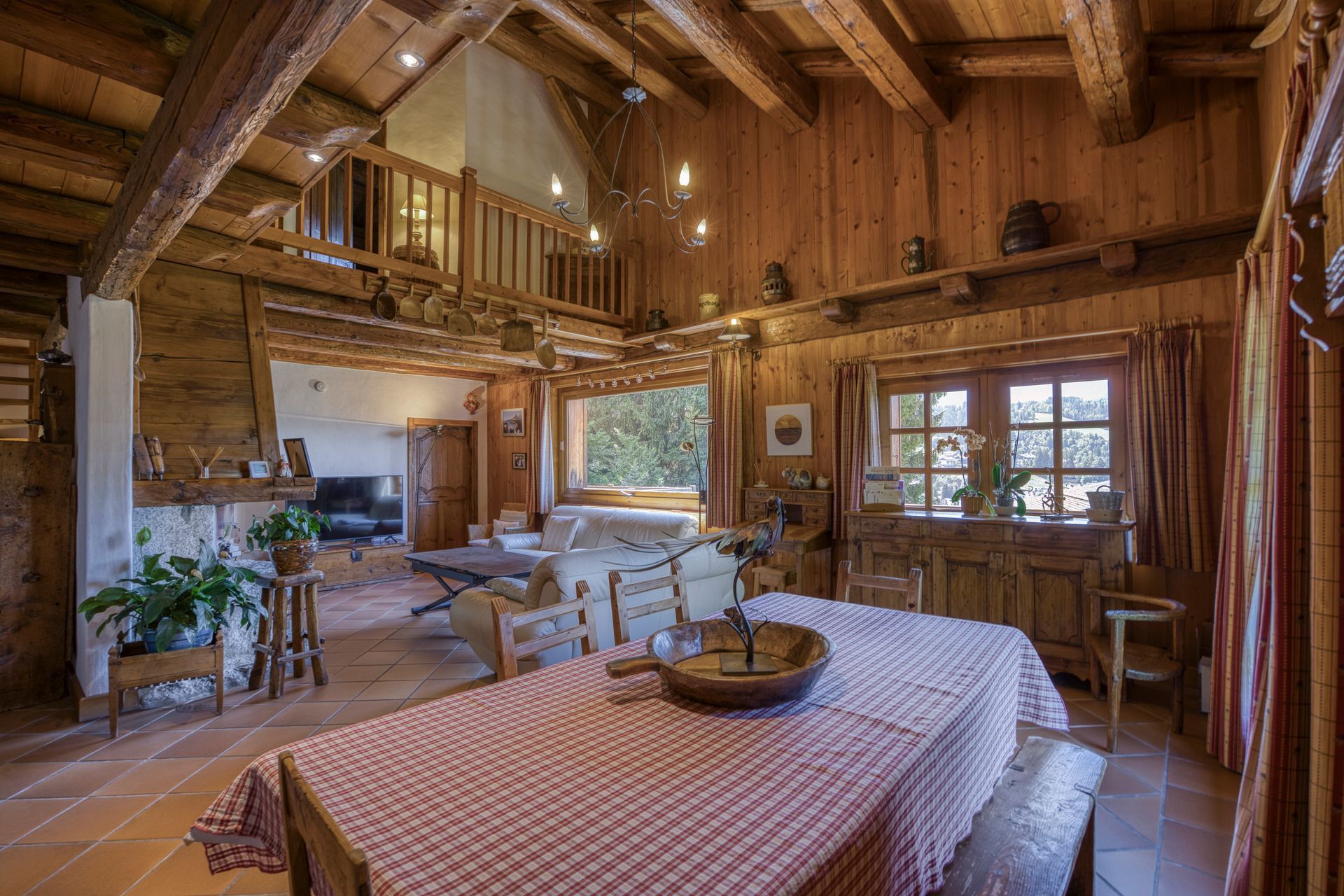 Superbe chalet traditionnel en vieux bois, situé en bordure des pistes de ski du Jaillet et à 10 minutes à pied du centre du village